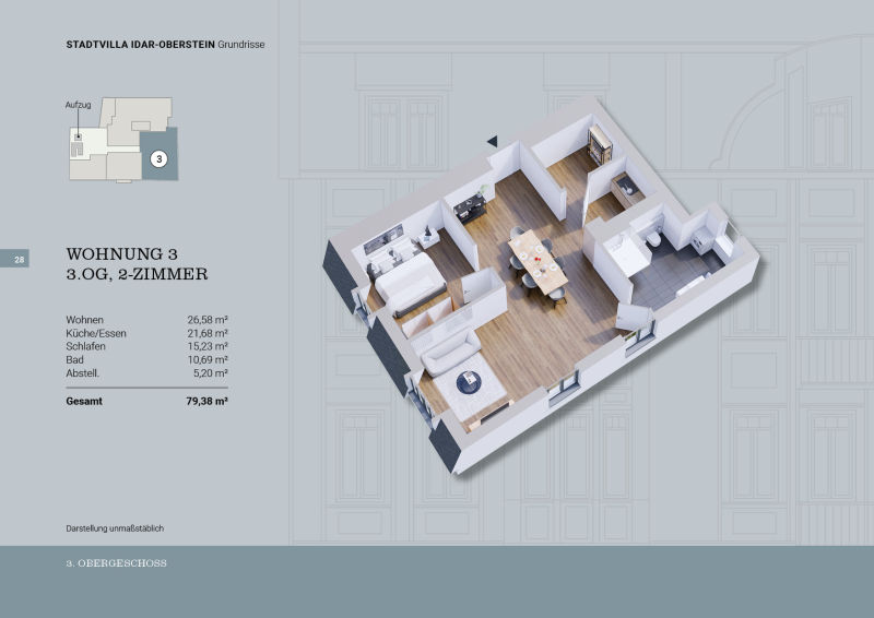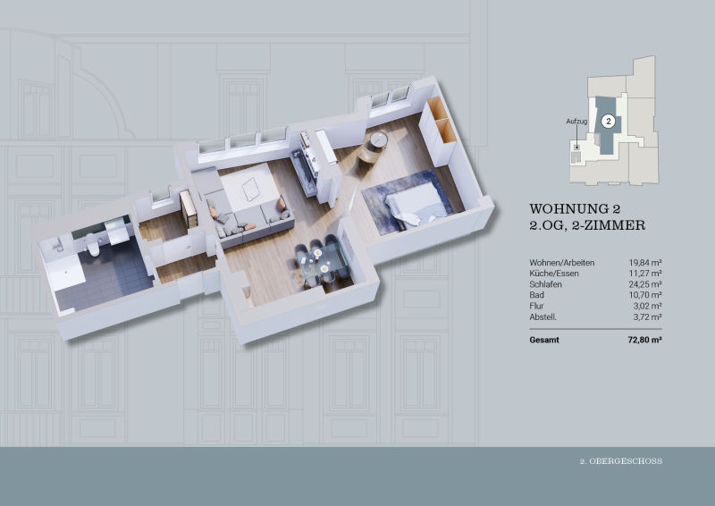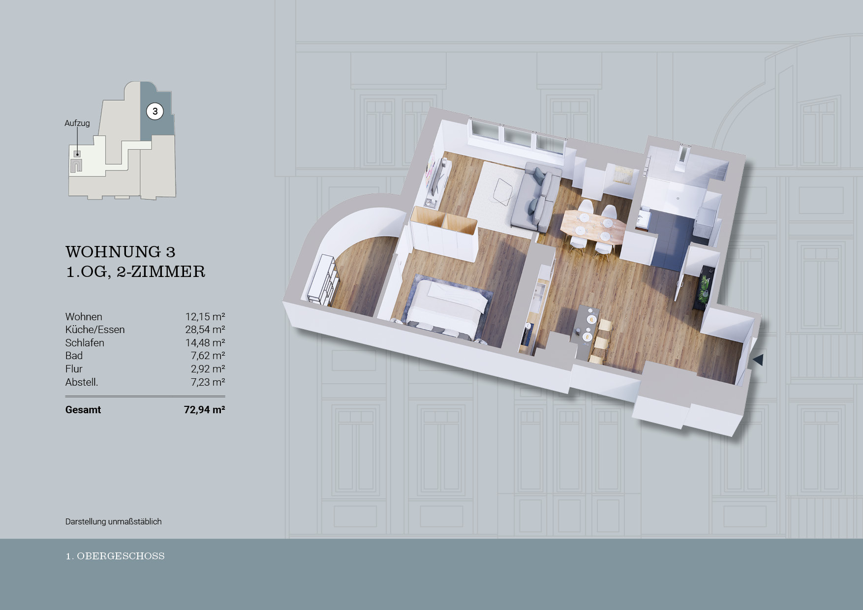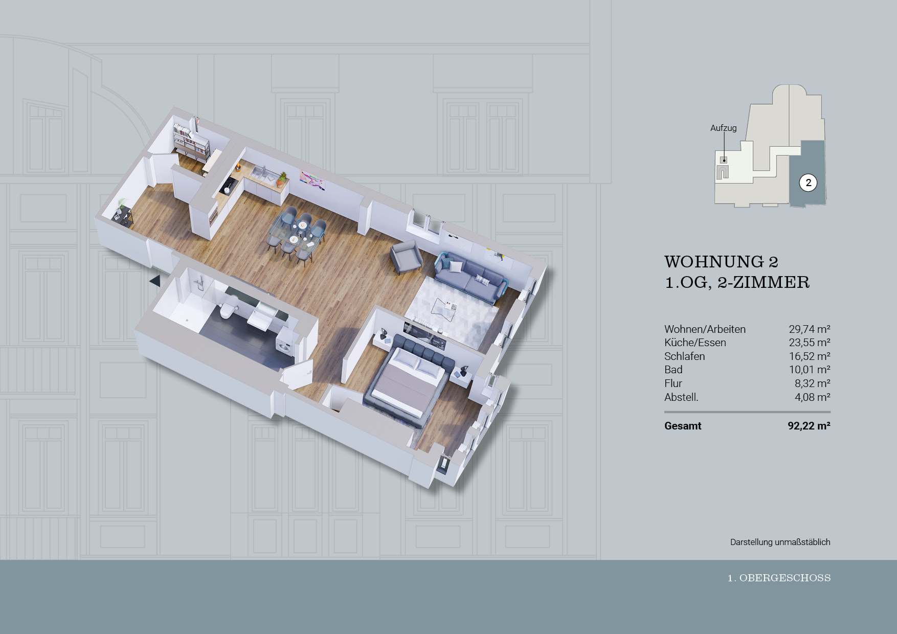 Gleichzeitig wird das Haus fit gemacht für die Wohnwünsche des 21. Jahrhunderts: Moderner Aufzug, Heizungssystem mit aktiver Kühlung, Energieeffiziente Wärmepumpe mit Gasunterstützung und vieles mehr.