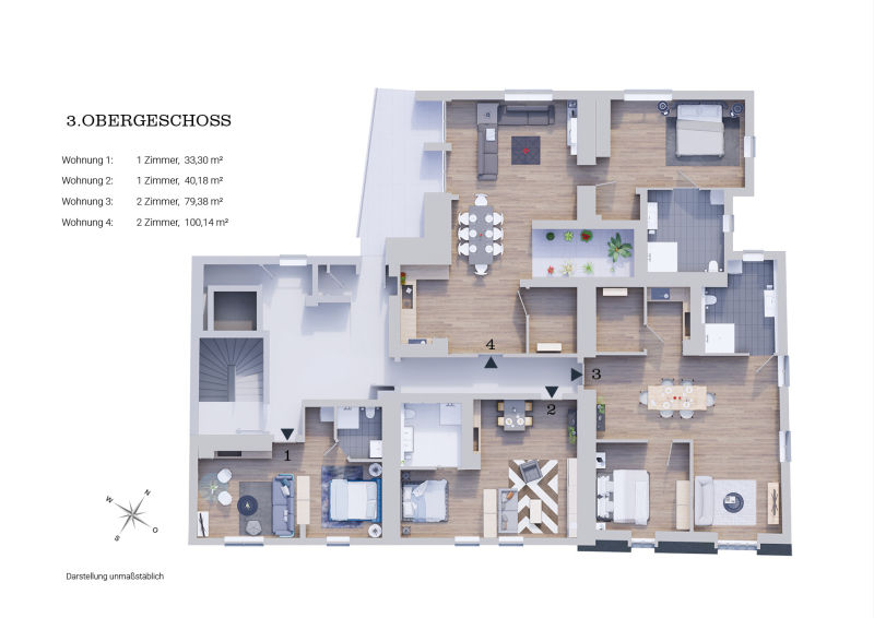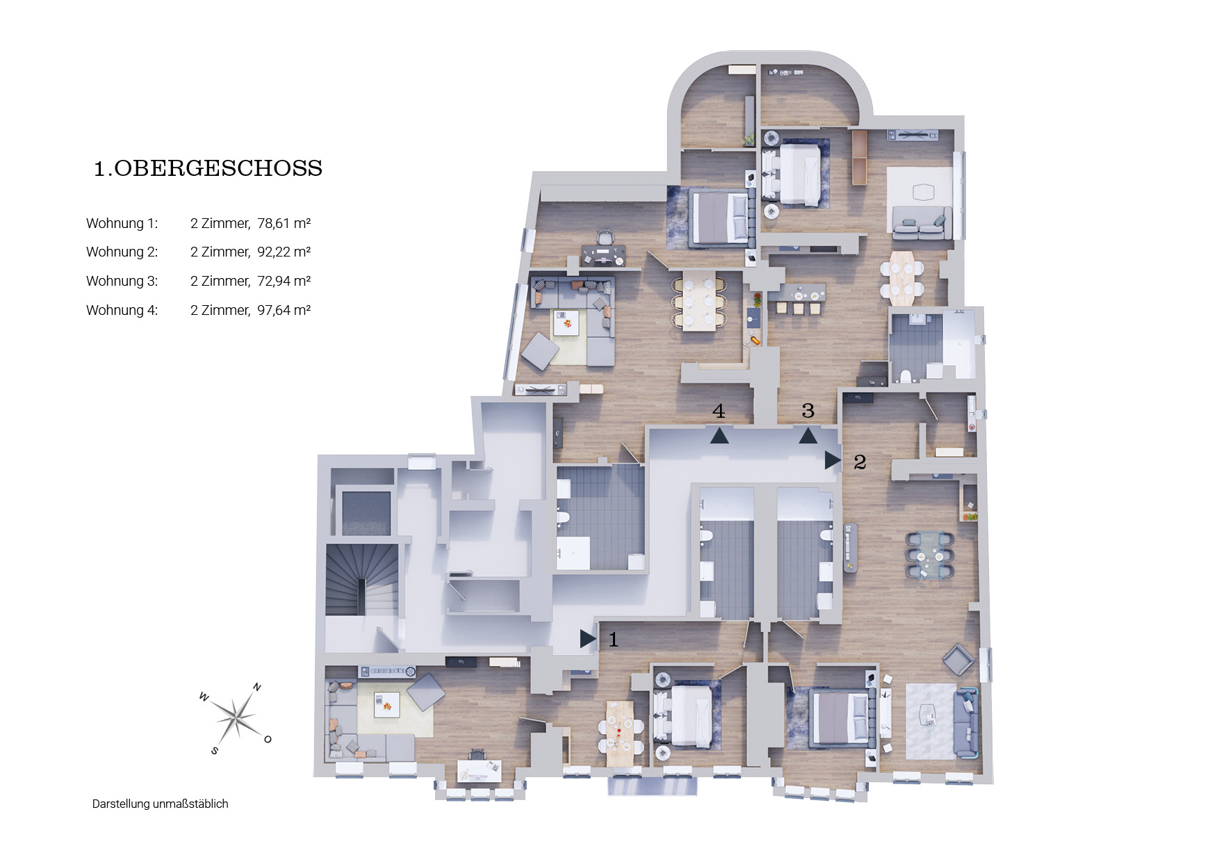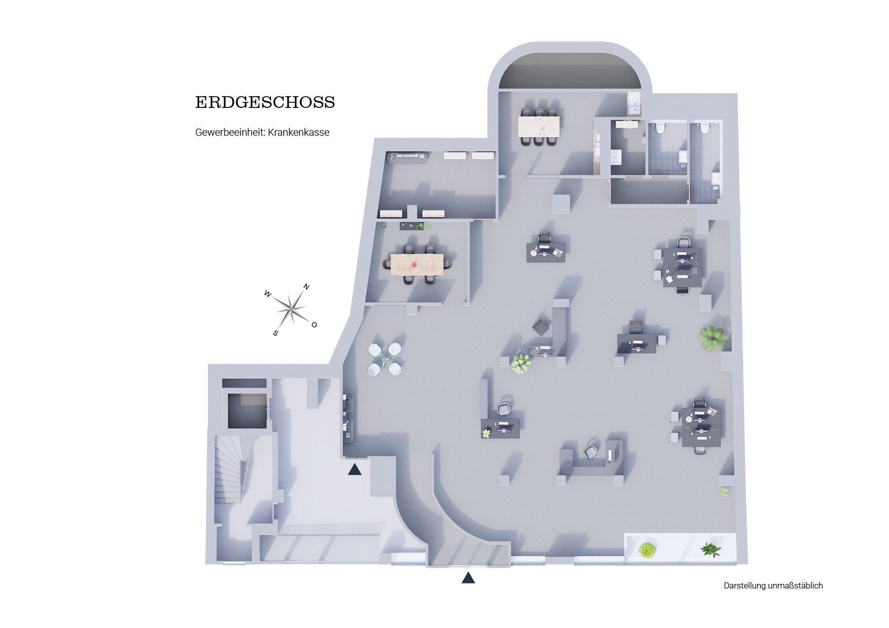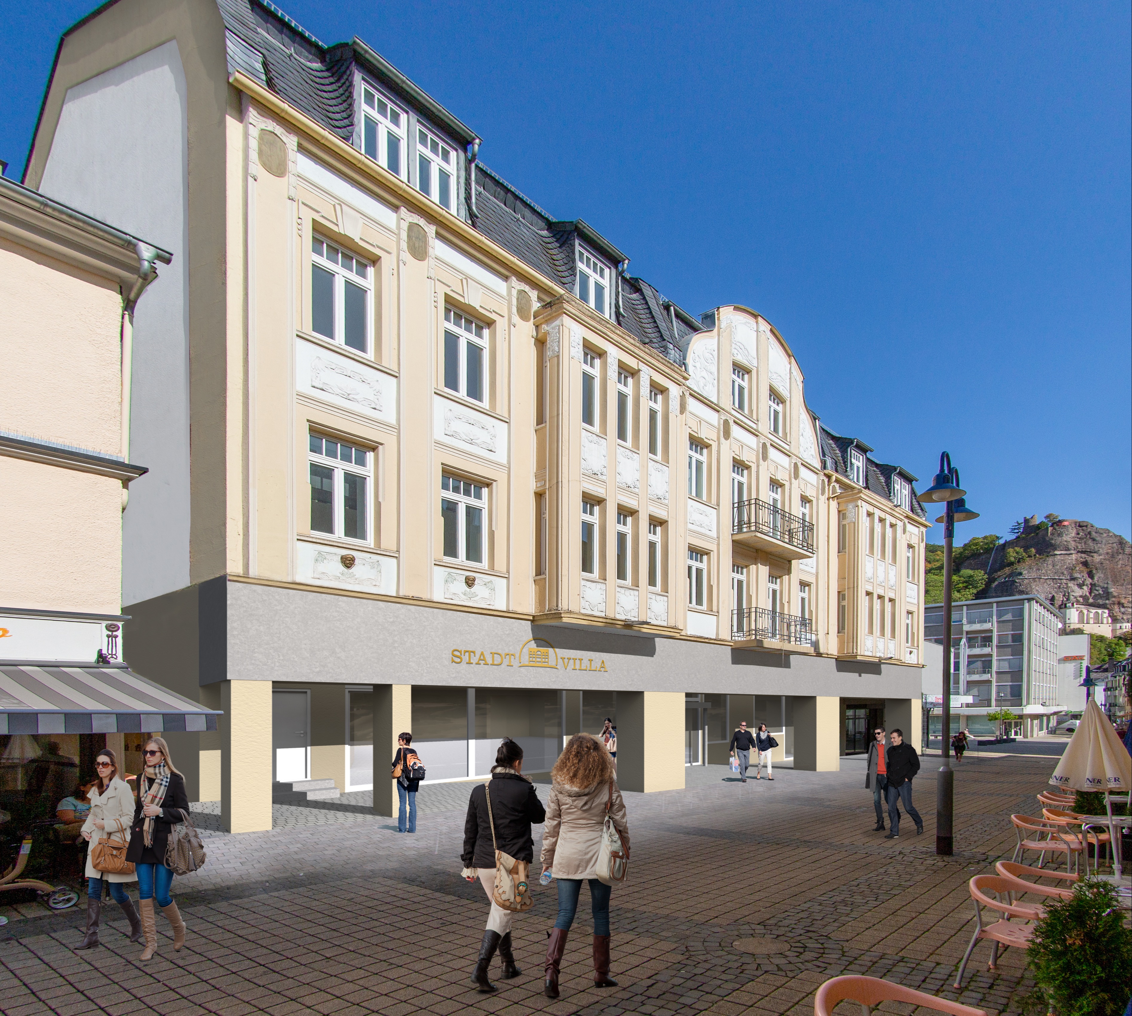 In der Fußgängerzone steht die STADTVILLA als klassisches Wohn- und Geschäftshaus. Die Ladeneinheit im Erdgeschoss dient einer Krankenkasse als Geschäftsstelle, sodass die darüberliegenden Wohnungen nicht mit Lärmbelästigungen rechnen müssen. Die oberen Etagen werden für moderne Wohnbedürfnisse umgebaut.
